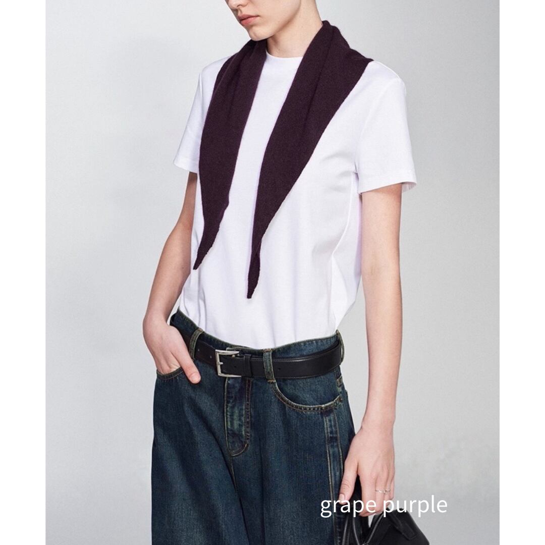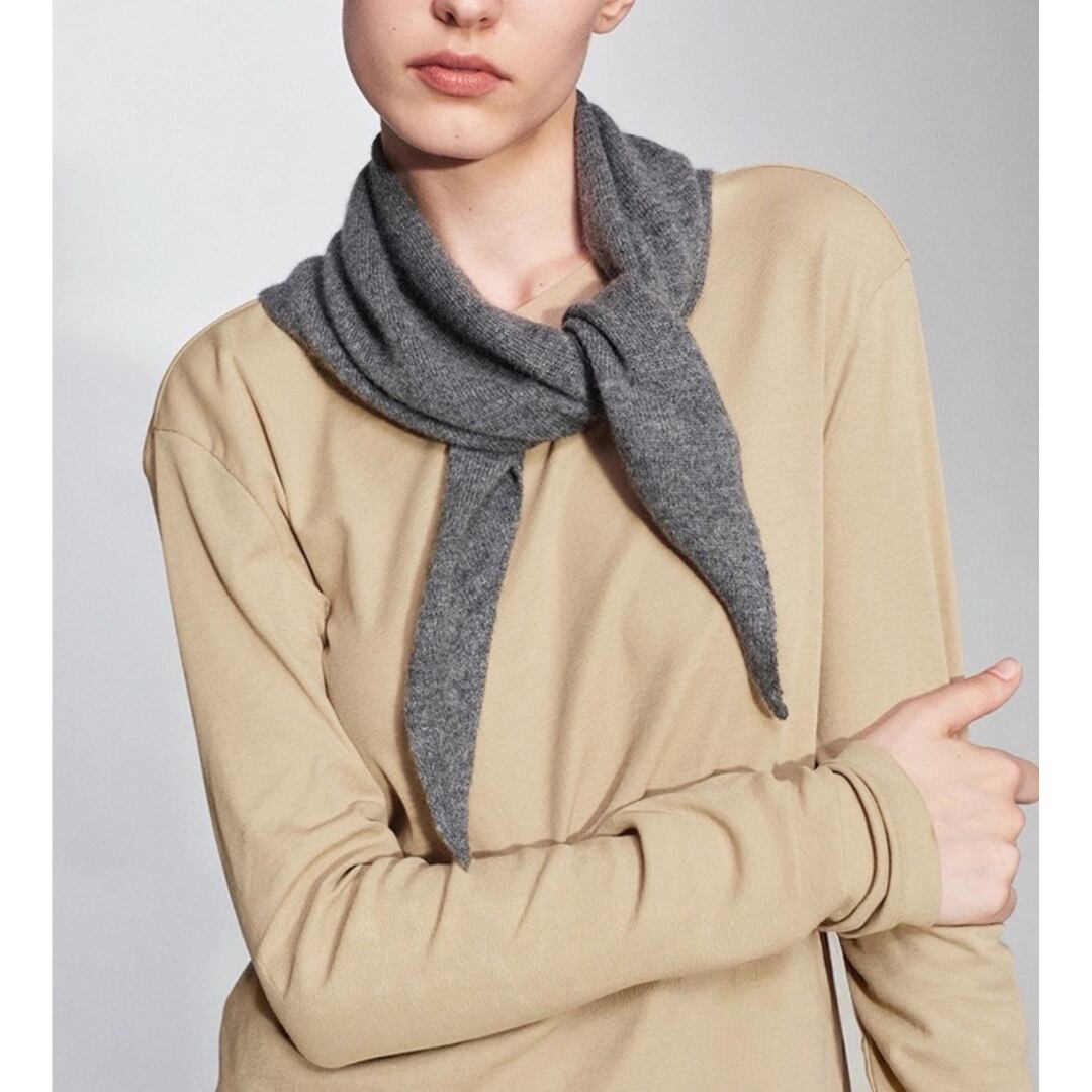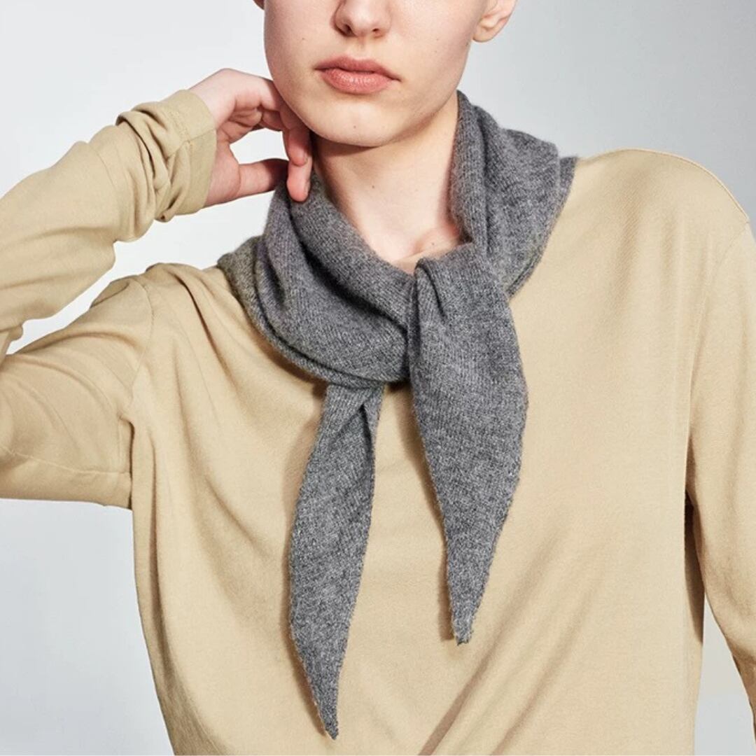 贅沢にカシミア糸を使用したトライアングルストール。軽やかなのに暖かく、素肌に溶け込むような柔らかさ。肩に掛けても首に巻いても、スタイルに奥行きを与え、洗練された存在感と抜け感を絶妙に両立させる。纏うだけでいつもの装いを格上げする、季節の変わり目に気が利く逸品。