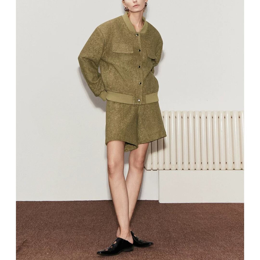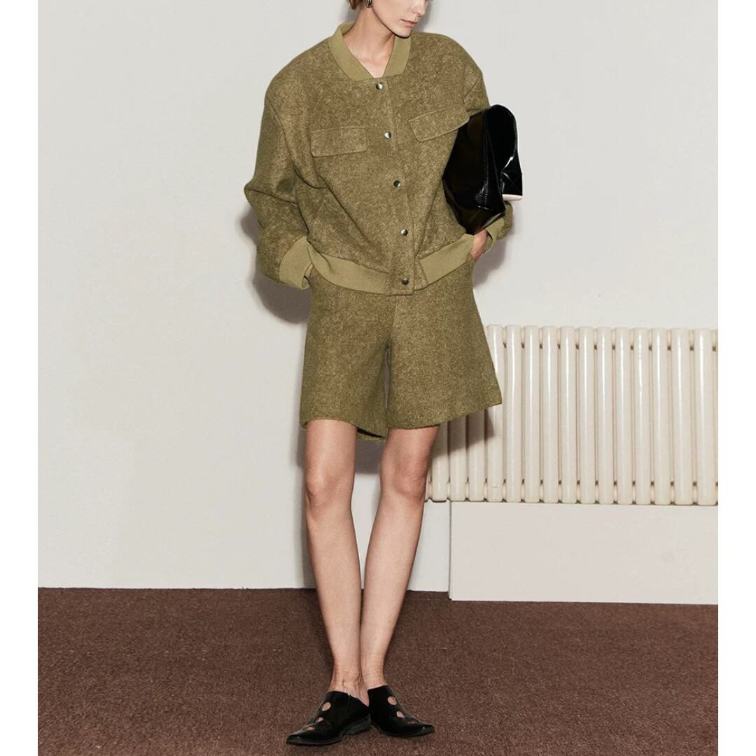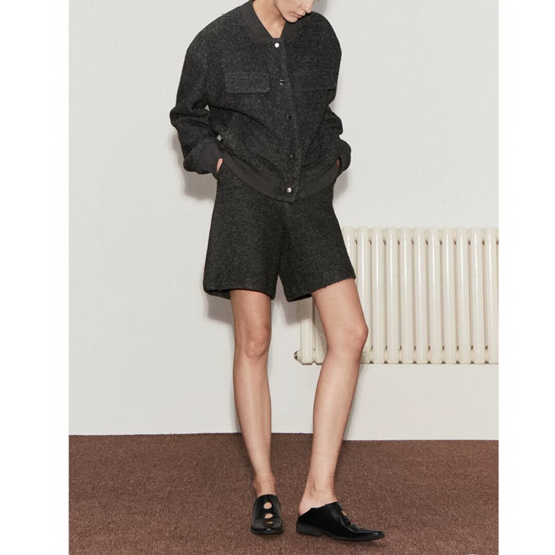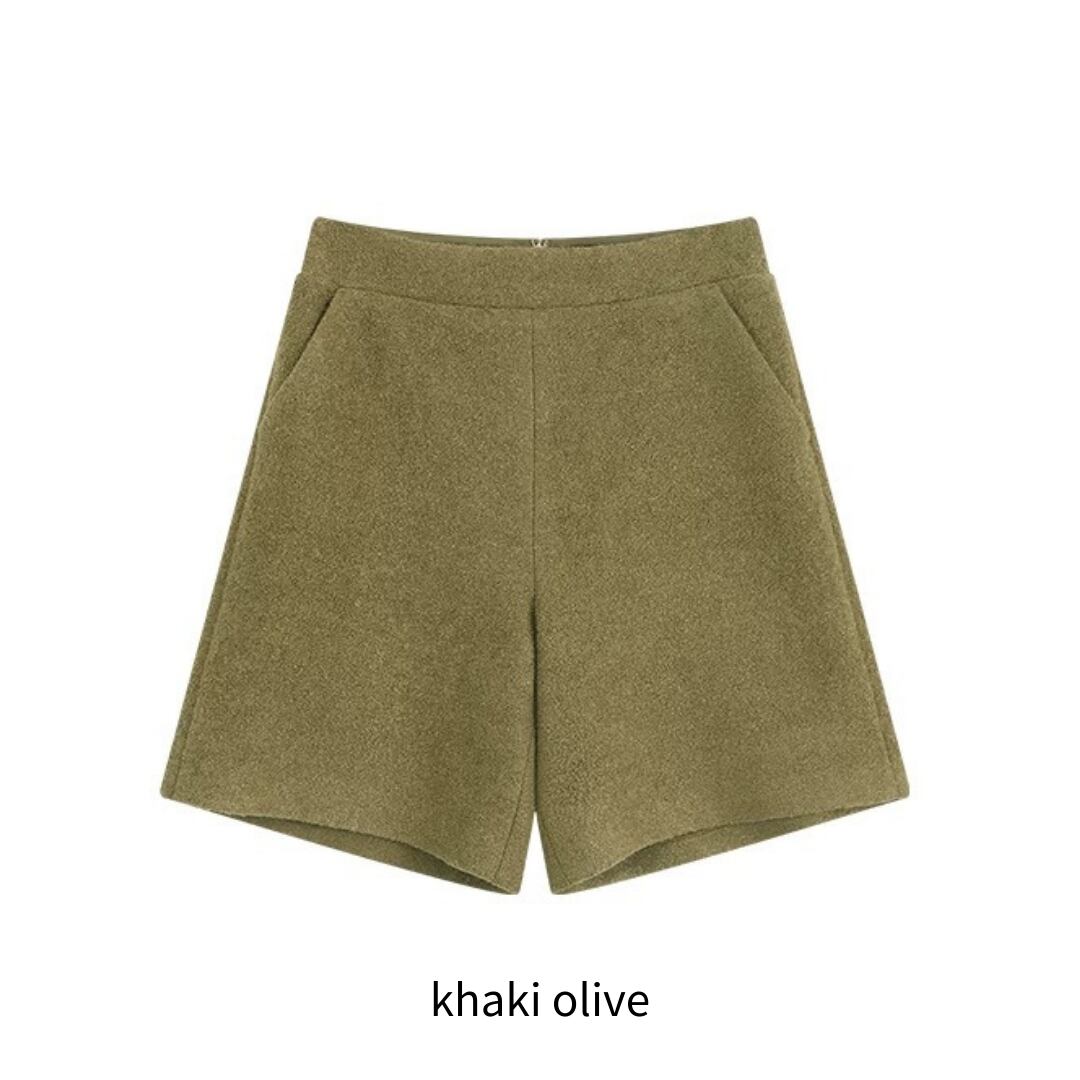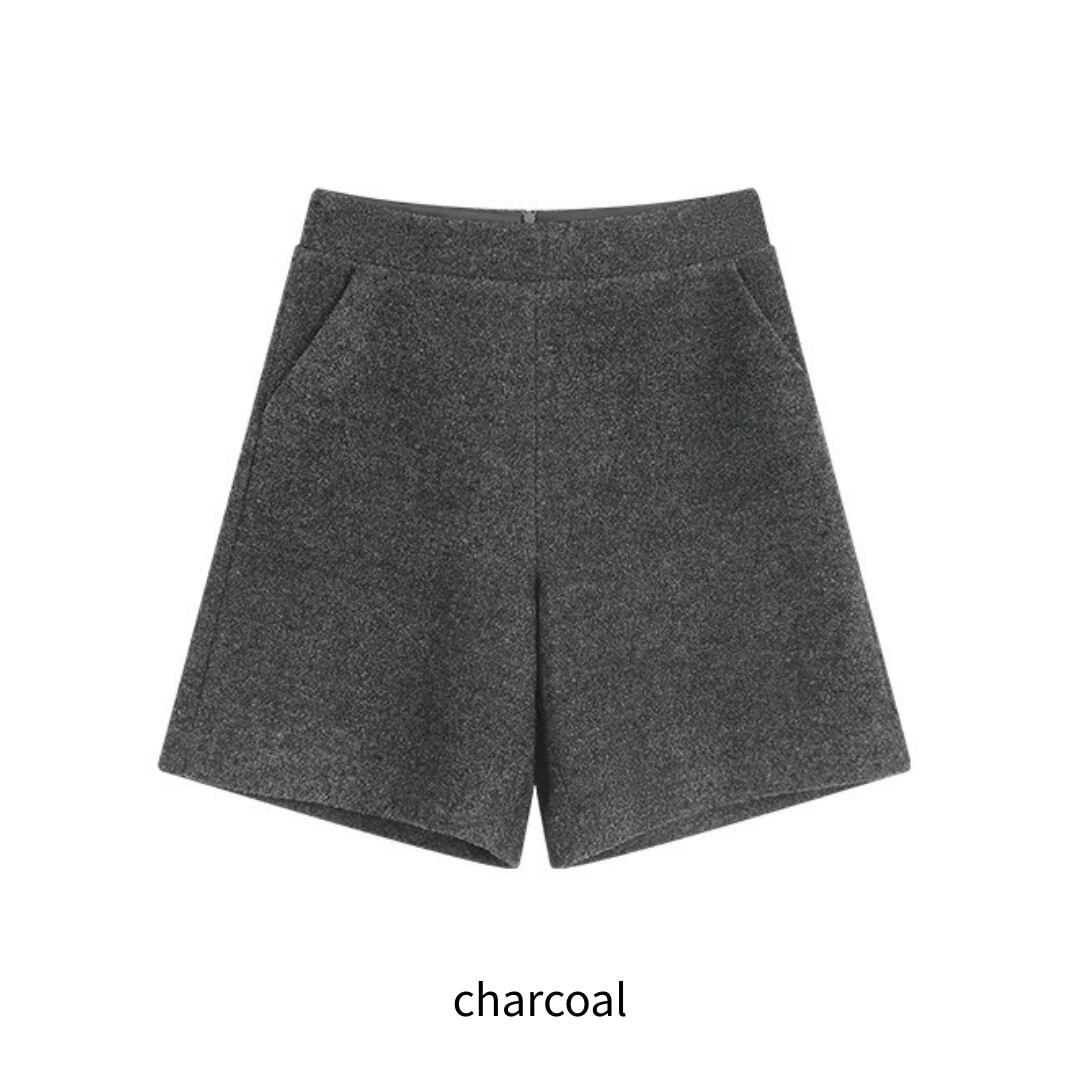 程よいボリューム感をもたせたシルエットで、大人の余裕を感じさせるウール混ショーツ。ふんわりと起毛感のあるテクスチャーがリッチな存在感を放ち、カジュアルになり過ぎないのが魅力。後ろウエストはすっきりとした開閉仕様。ハイウエストに絶妙な丈感が、脚のラインを美しく魅せてくれる逸品。