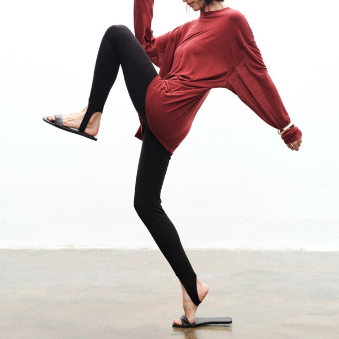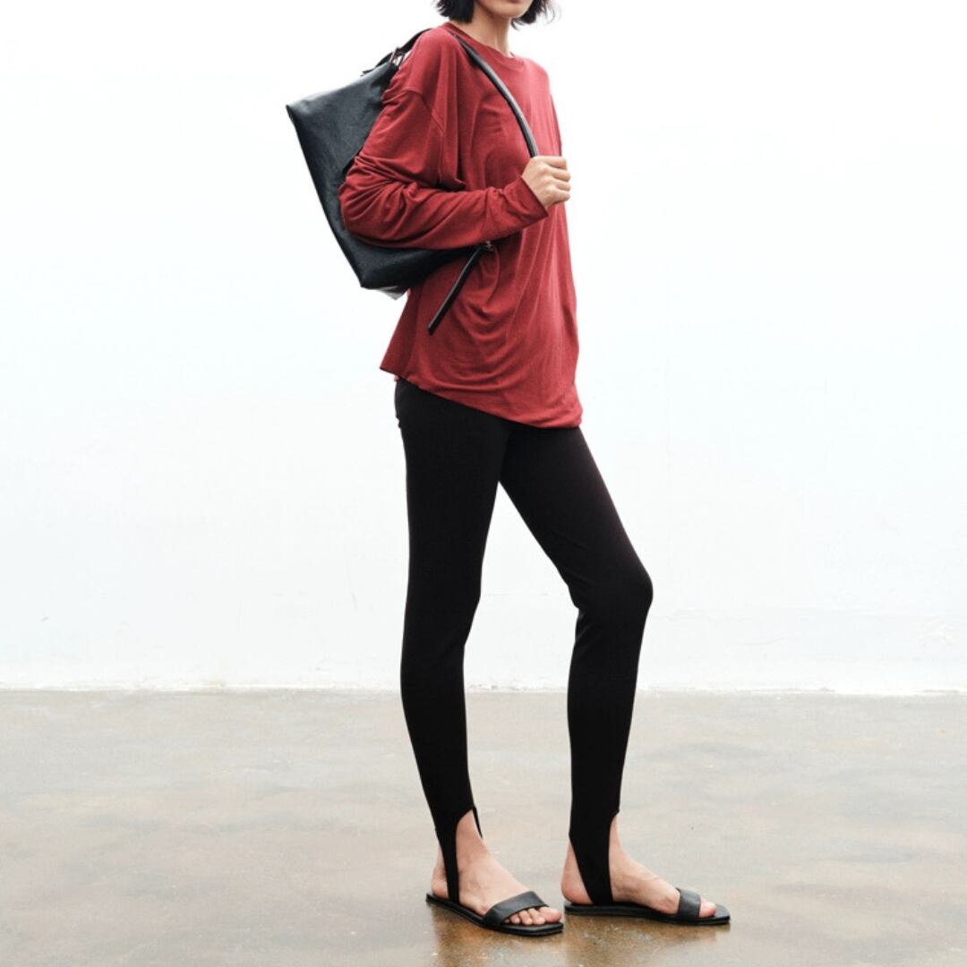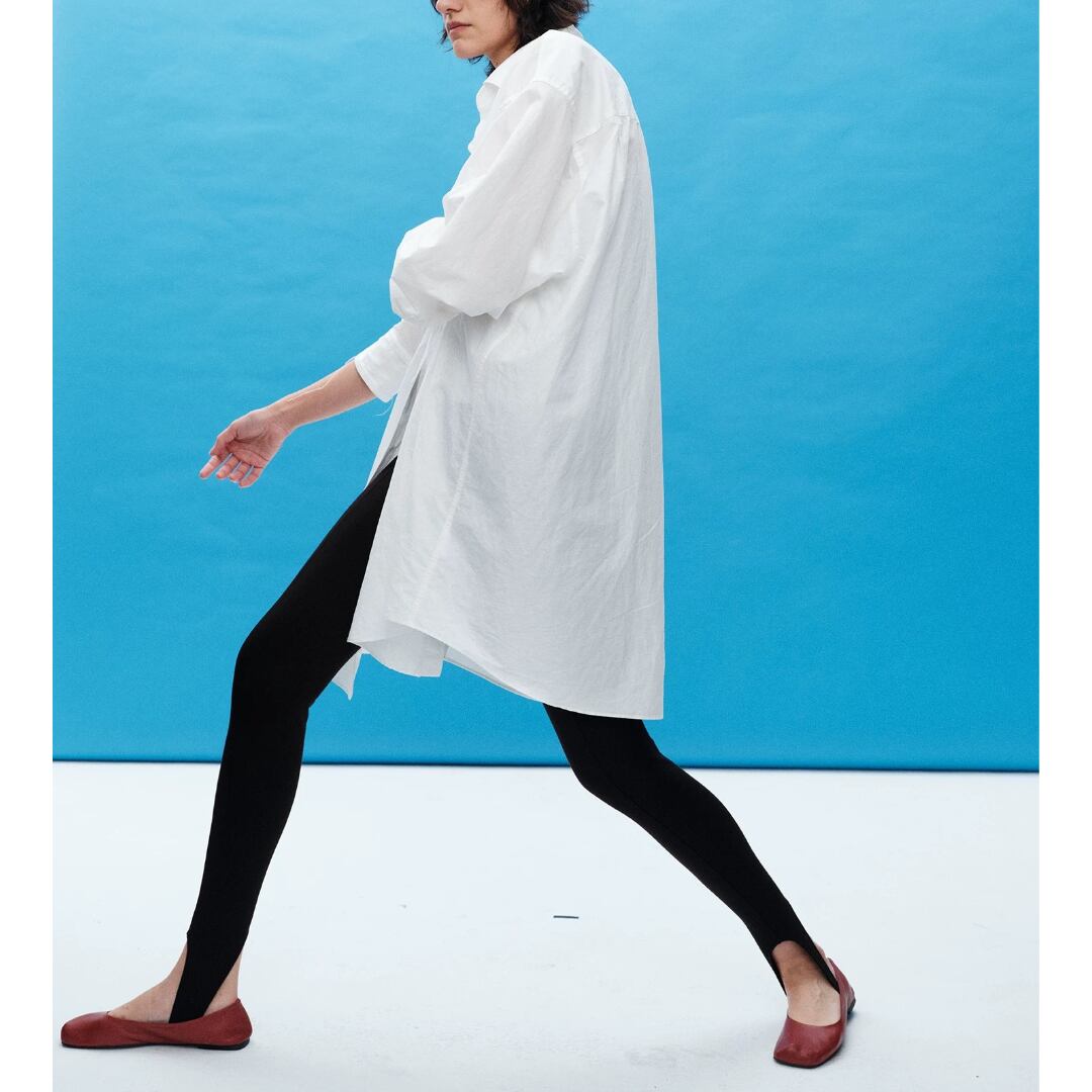 通常のストレッチ素材を遥かに超える『Lycraスーパーストレッチファイバー』使用。着用後もすぐに形を回復し、膝抜けや型崩れを防ぐ上、素肌に吸い付くような心地よさを実現。裾のストラップデザインがモードなアクセントとなり、存在感を放つ。これまでのレギンスのイメージを覆す、パンツの新定番。