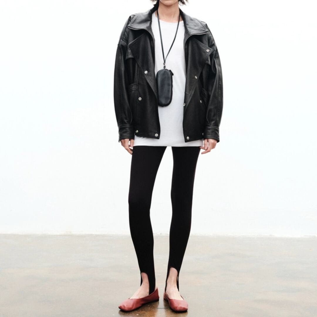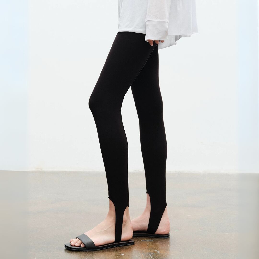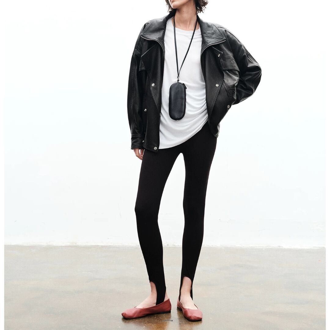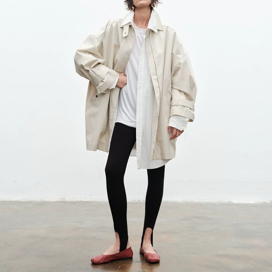 通常のストレッチ素材を遥かに超える『Lycraスーパーストレッチファイバー』使用。着用後もすぐに形を回復し、膝抜けや型崩れを防ぐ上、素肌に吸い付くような心地よさを実現。裾のストラップデザインがモードなアクセントとなり、存在感を放つ。これまでのレギンスのイメージを覆す、パンツの新定番。