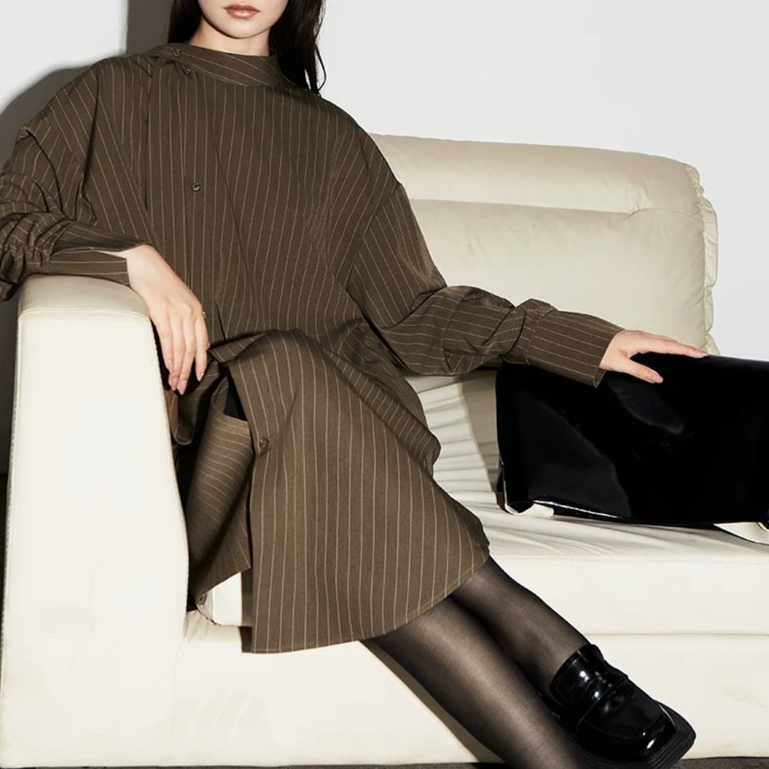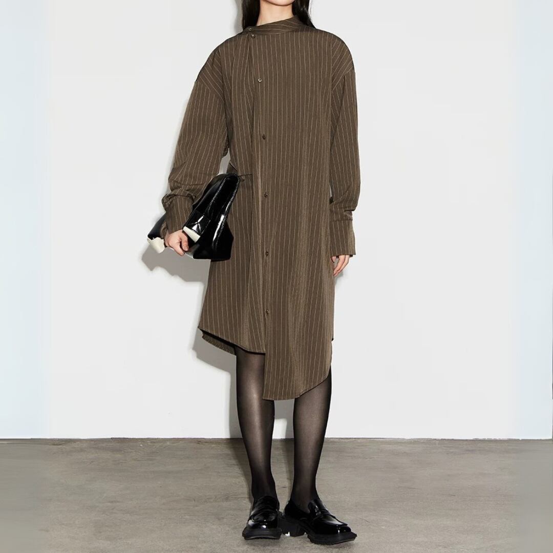 知性と余白を纏う、モードなストライプワンピース。