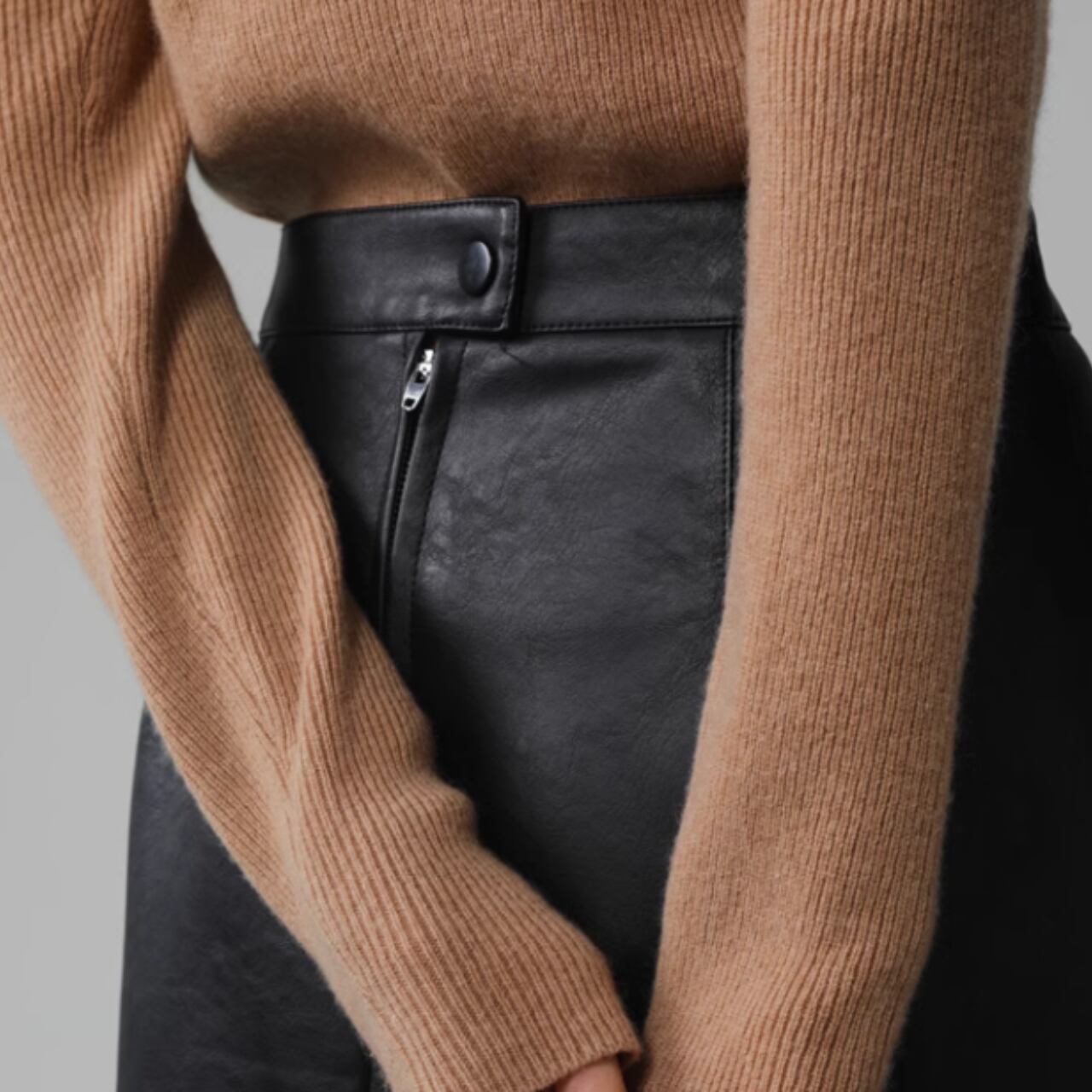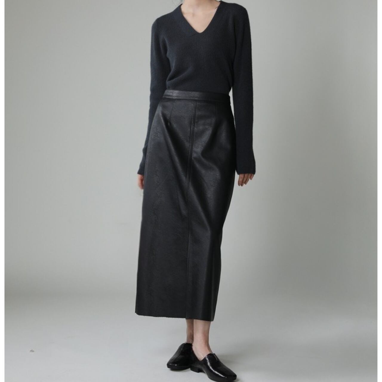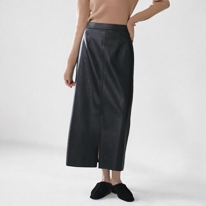 PU-leather middle slit skirt 00009