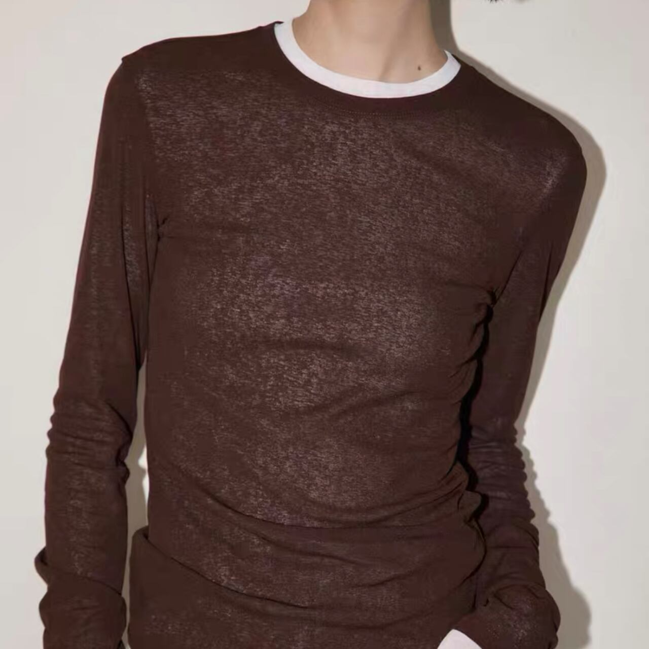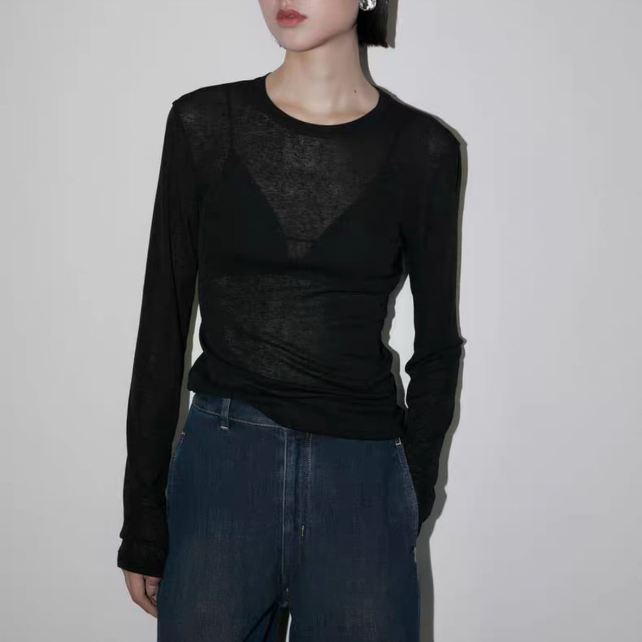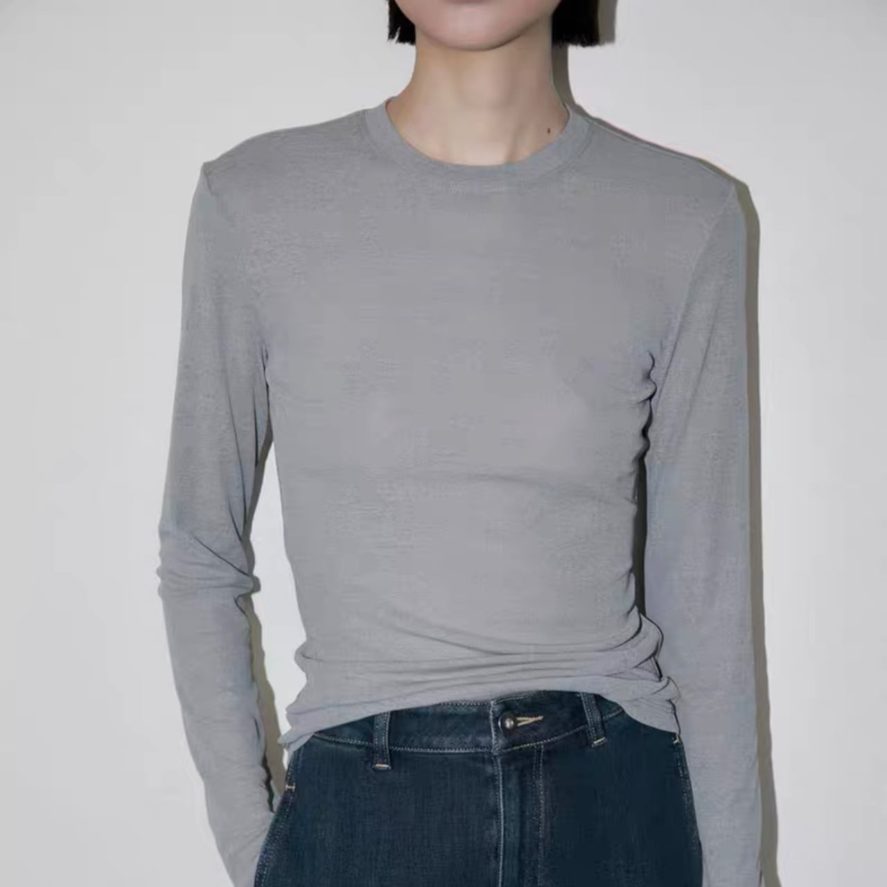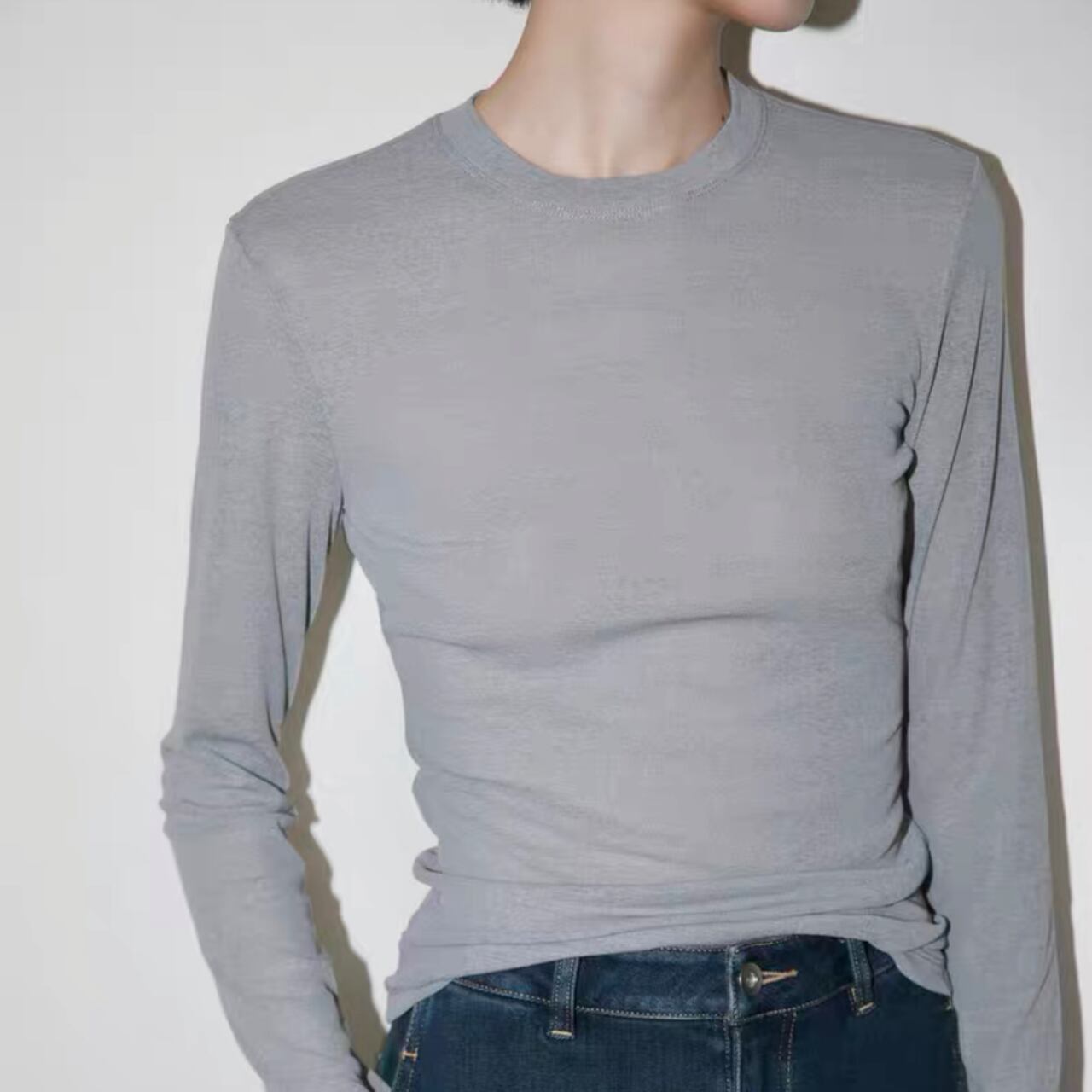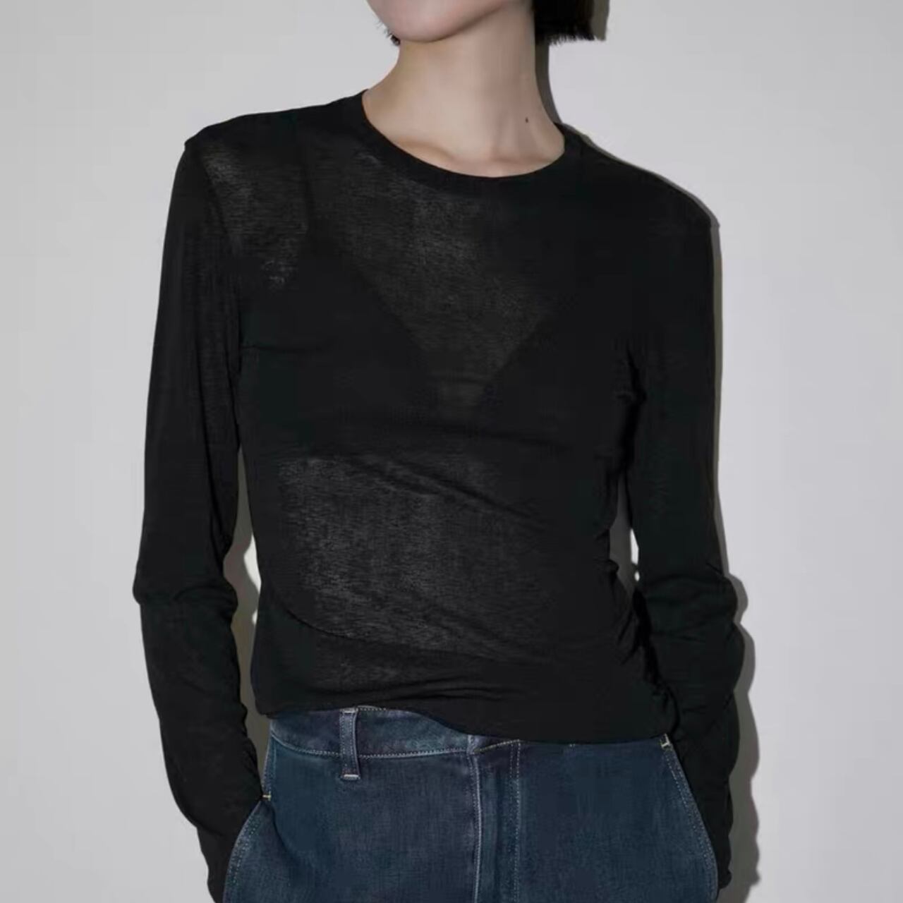 トレンドのベーシックなシアートップTシャツ。