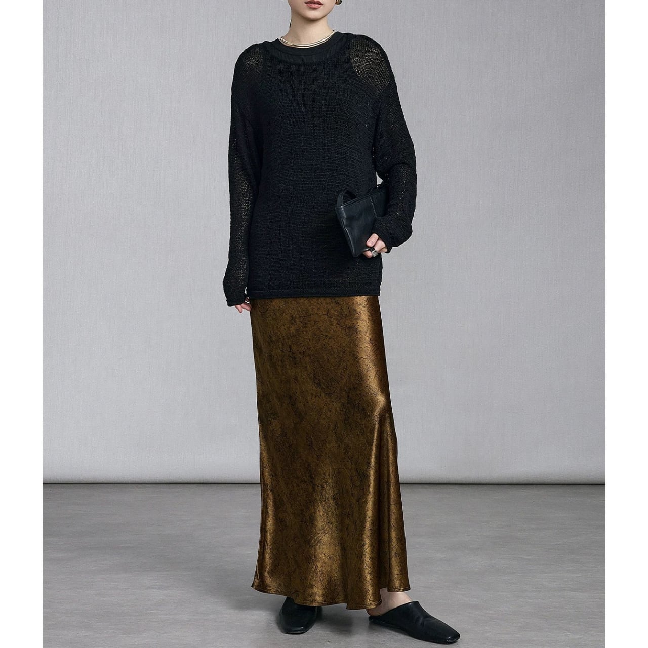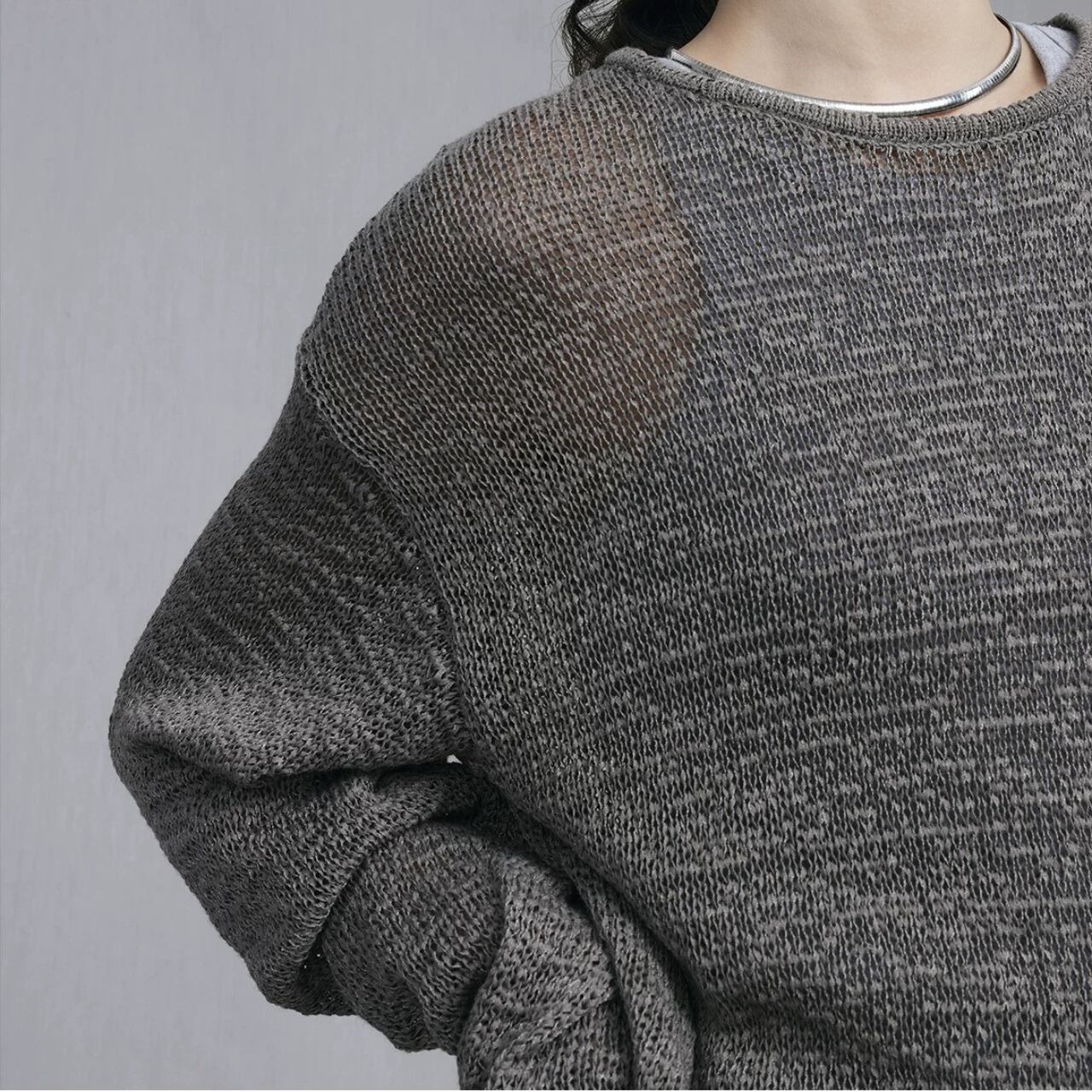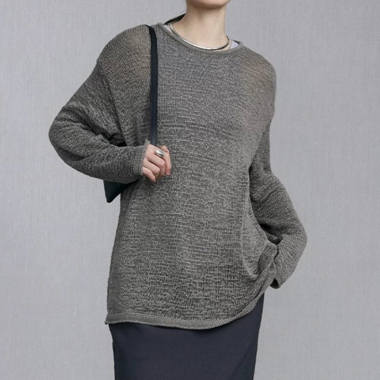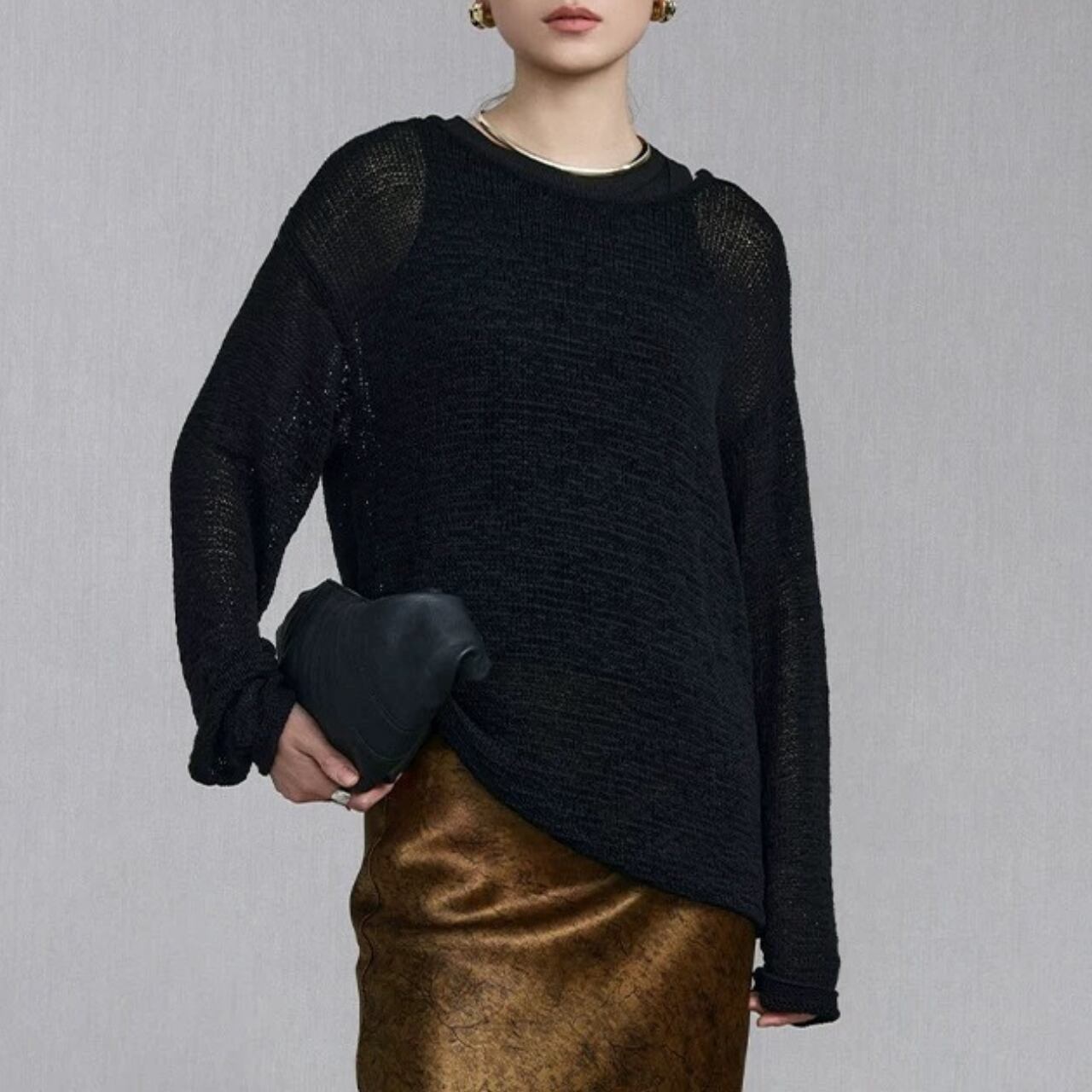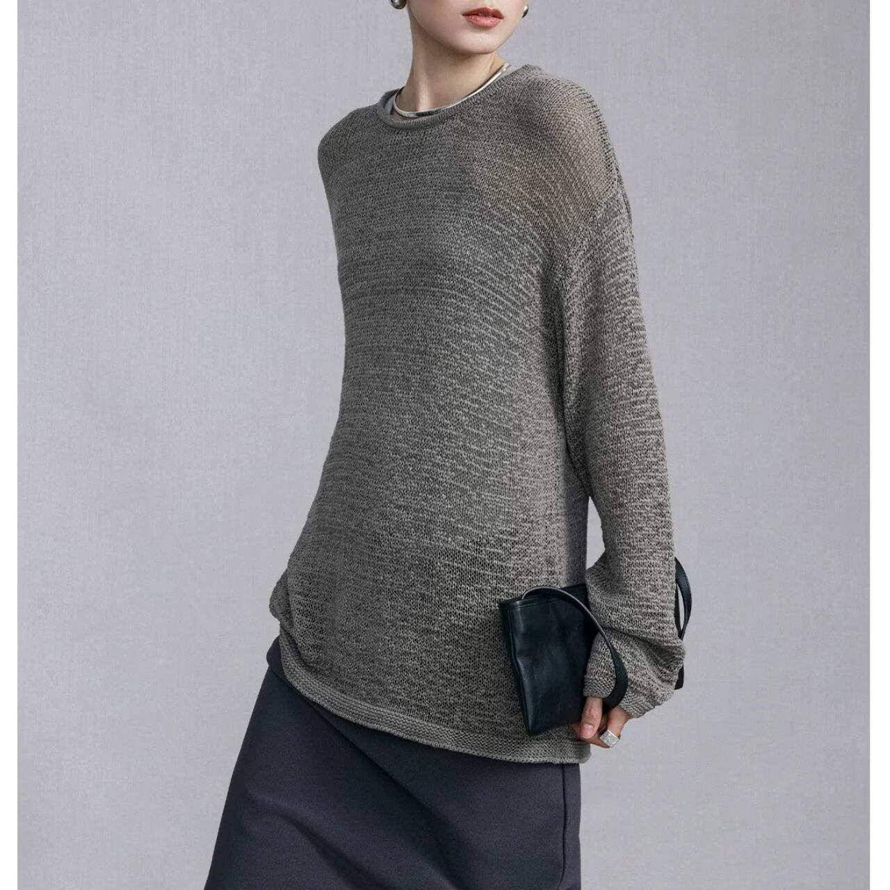 軽やかな透け感が特徴のシアーニット。程よいゆるさと落ち感で、シンプルながらもどこかセンシュアルなムードに。通気性に優れ肌離れの良い快適な着心地で、一枚でこなれ感を演出できる頼れる一着。