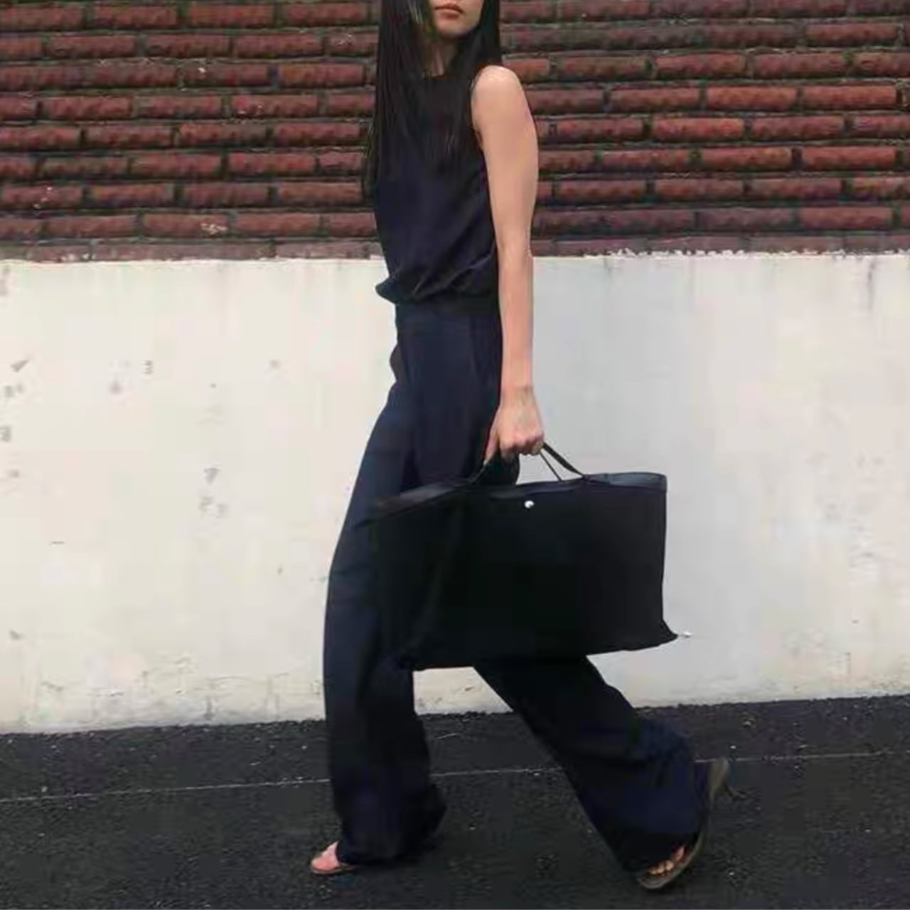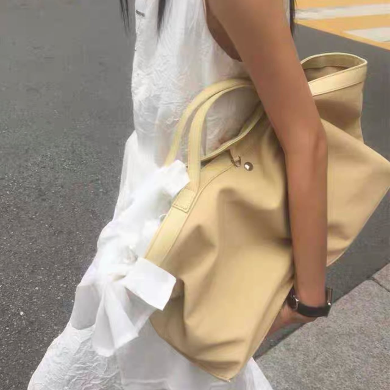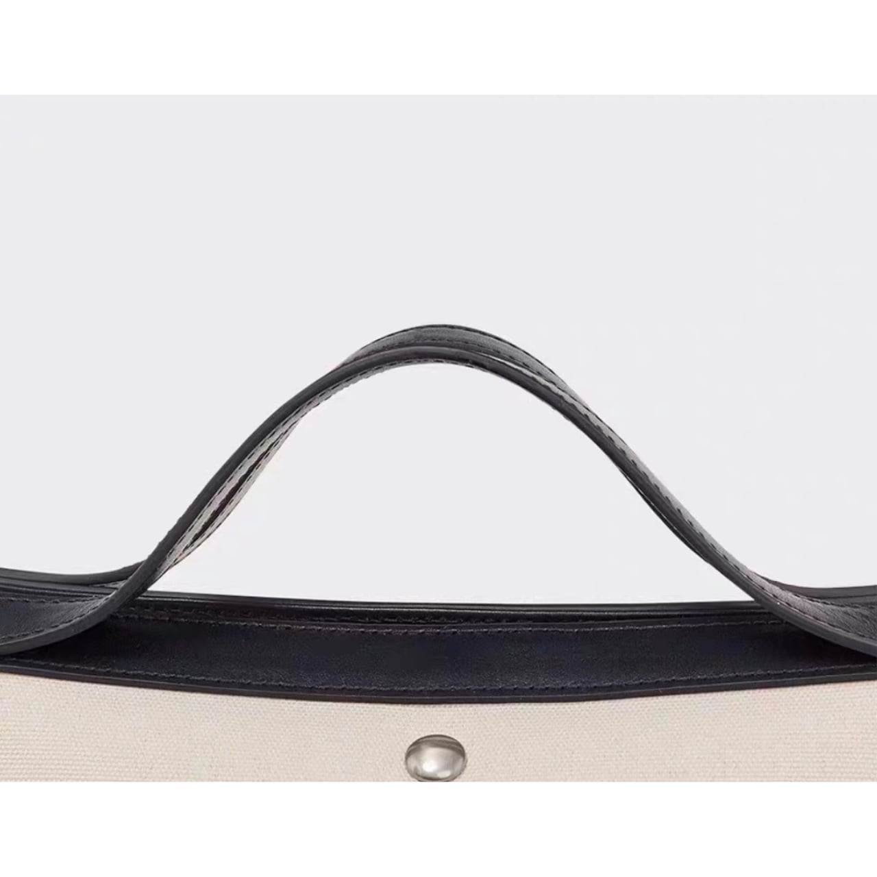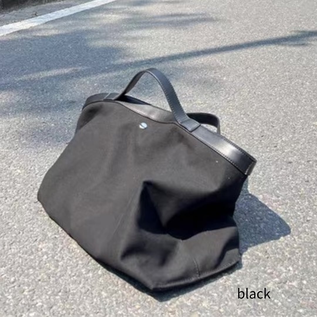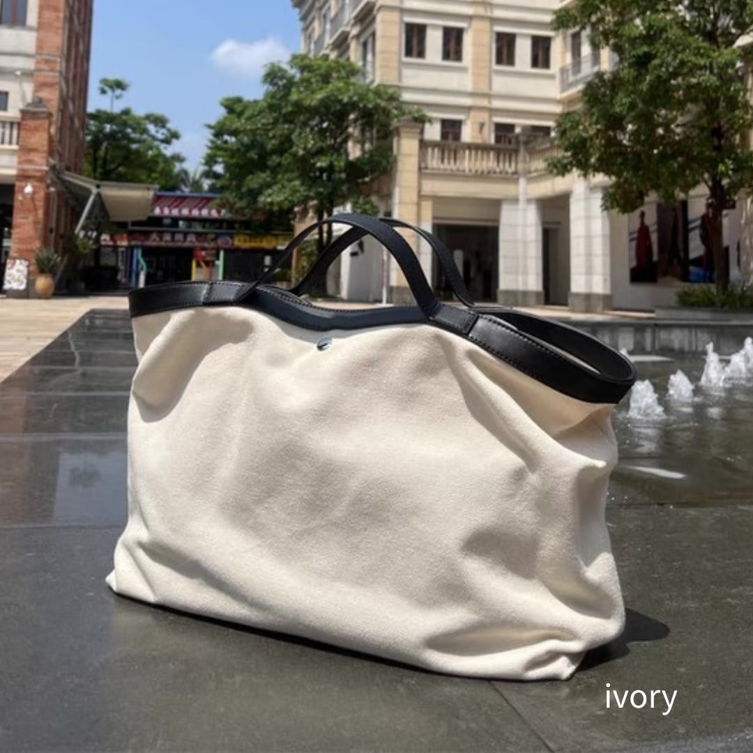 存在感のあるサイズ感と、力の抜けたナチュラルさが魅力のキャンバストート。ややくったりとした厚手キャンバスに、レザーライクなPUハンドルトリムで程よいモードを添える。どんな装いにも抜け感をプラス、日常にも旅にもフィットするミニマルな相棒。