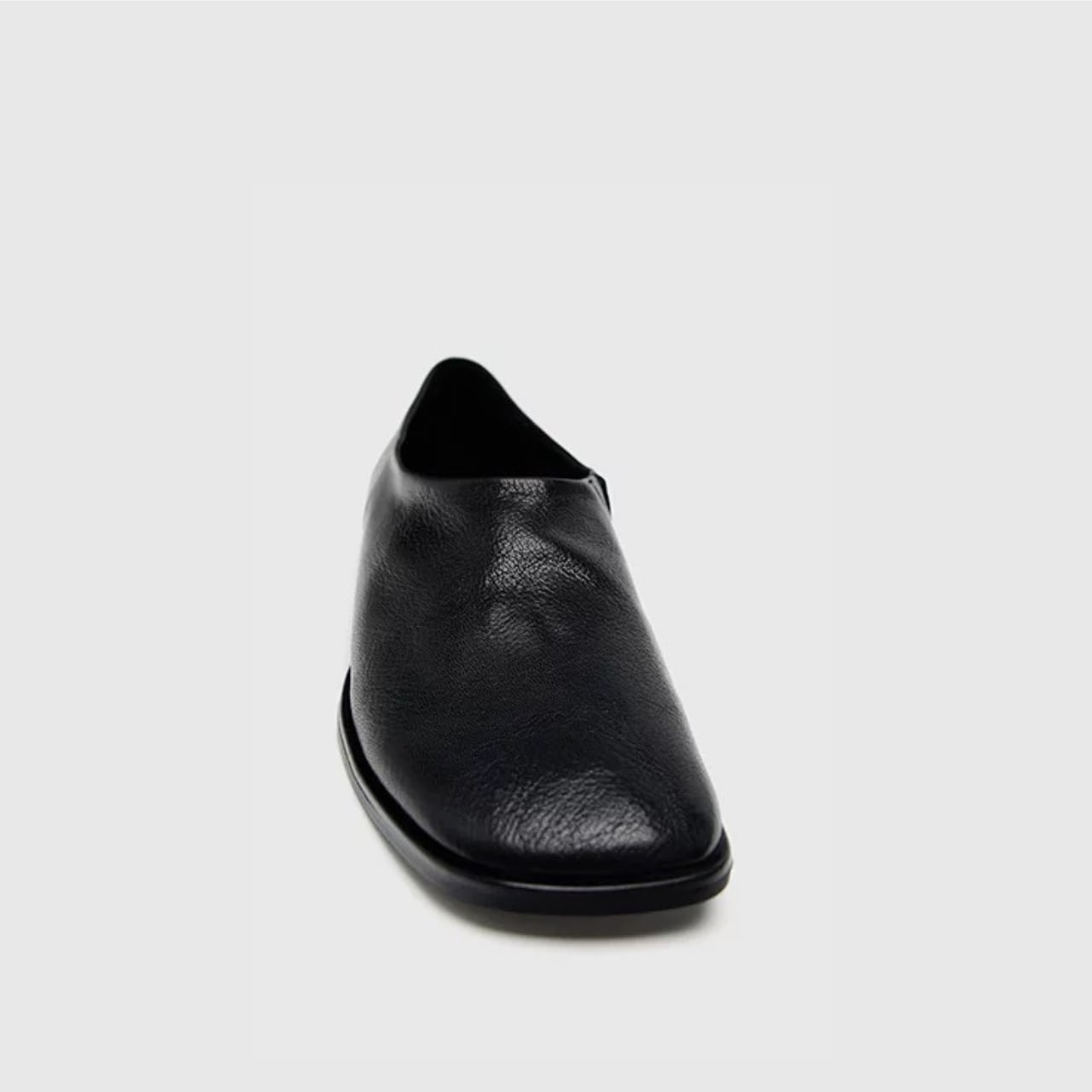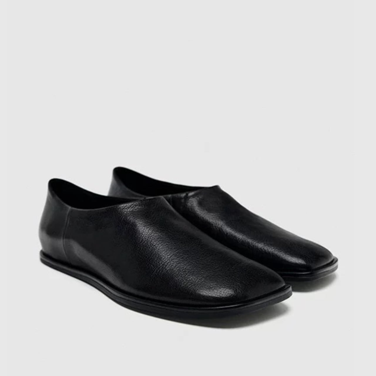 フラットソールが足に馴染み、力の抜けた大人のモードスタイルを演出する。カジュアルからフォーマルまでデイリーユースに最適な一品。