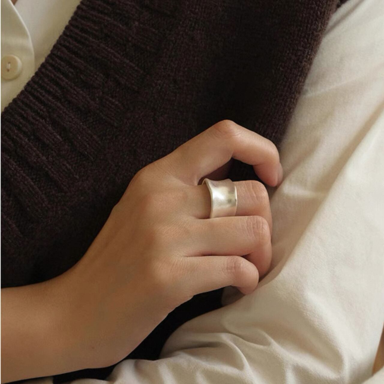 ワイドシルエットが存在感を放つブラッシュリング。